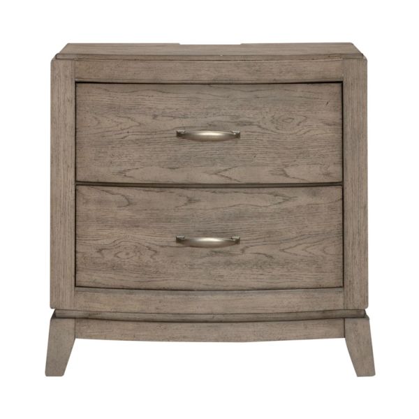 Create a calm and peaceful oasis with the Avalon nightstand with charging station. The narrative of the Avalon nightstand begins with its graceful bow shaping; a design choice that adds a touch of artistry to its silhouette. The step top molding further accentuated its visual appeal, creating a seamless transition between the top surface and the body of the nightstand. Together, these elements form a design symphony that brings traditional charm into the contemporary realm. The Avalon nightstand embraces the future with the built in charging station, a nod to modern living. The charging station is complete with 2 AC outlets, 1 USB-A and 1 USB-C charging ports, seamlessly integrating technology into its classic design.