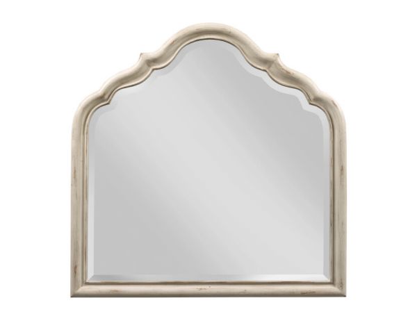 This mirror is elegantly designed with a serpentine shape and hand beveling. It is constructed of White Oak veneers and select solid in a Creme finish.