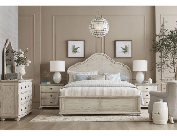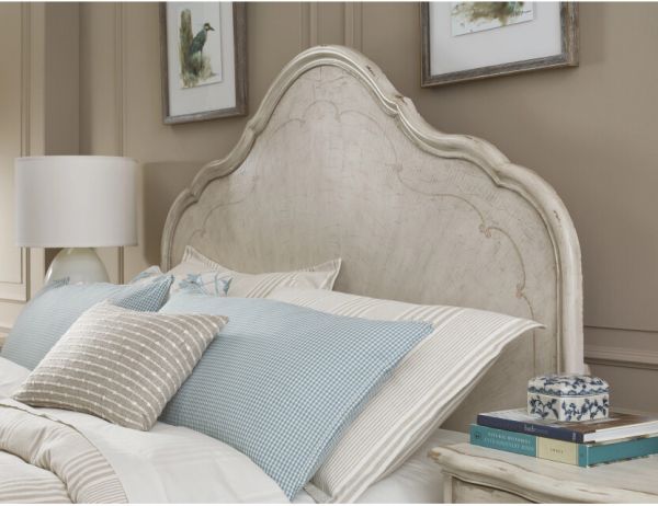 Sophisticated eclectic, and fine craftsmanship is the definition of the Cambric panel bed.. This piece is constructed of White Oak veneers in a Creme finish with hand painted detail showcasing the headboard.