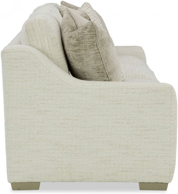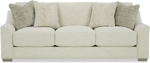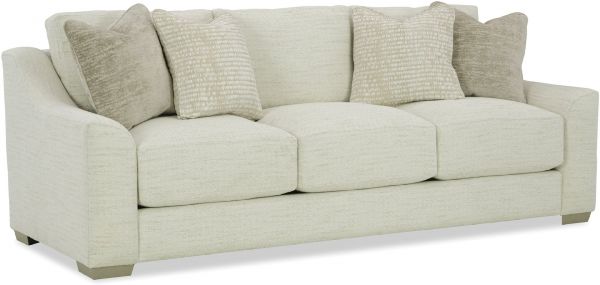 This three-seat sofa with wide sloping arms and low block legs brings a bold, modern look to any space. It features French-seaming, plush 8" Blend-Down seat cushions, and loose back pillows, for optimum comfort and relaxation. Two pairs of LuxDown toss pillows come standard.