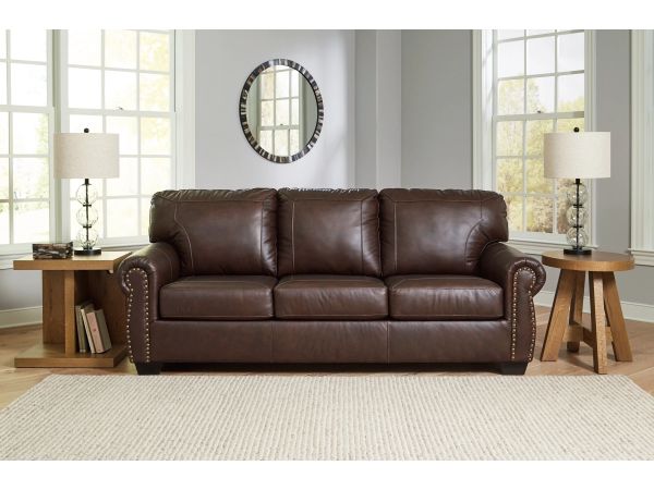 A traditional piece featuring leather upholstery and high quality foam cushions, the Colleton sofa brings classic and cozy right to your living room. The platform foundation allows the sofa to maintain a factory-new look by minimizing sagging and wrinkles.