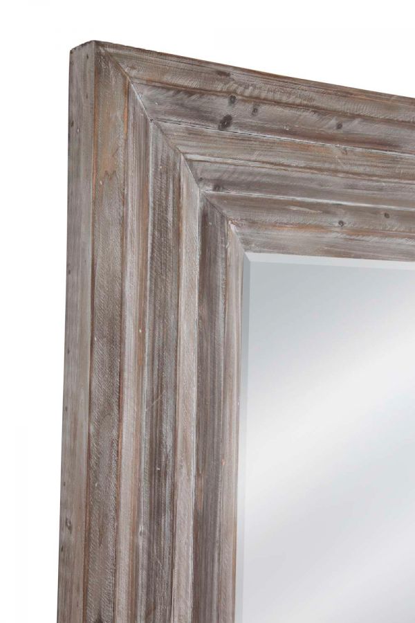 The Cornwall Leaner mirror embodies the essence of traditional farmhouse charm with its reclaimed wood frame. The large frame, adorned with a light white-washed finish, exudes warmth and character, making it a standout piece in any living space. Crafted with attention to detail, this mirror adds rustic elegance and timeless appeal to your home decor.Dimensions: 2.8L x 56W x 80H