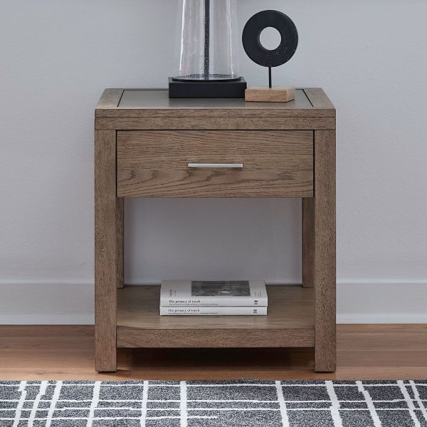 The Corso End Table blends modern industrial style with practical storage, making it a standout addition to any living room. A single storage drawer with a flat-cut drawer front offers discreet space for essentials, while the square block legs frame an open bottom shelf, perfect for displaying décor or keeping extra items close at hand.