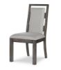 Counter Point is a transitional styled group that offers perfectly scaled pieces for the dining room. The Counter Point Upholstered Side Chair provides comfort and timeless style. Combine with the coordinating Leg Table and Credenza to create a dining set sure to fit many spaces. The Satin Smoke finish lets the character of the wood grain subtly shine through. Each item is designed to meet modern needs and conveniences. Features such as felt-lined and cedar lined drawers, silver trays, and creative storage options add function to this group. Crafted of Poplar Solids and Quartered White Ash Veneers, Counter Point will add style and value to the home for years to come.