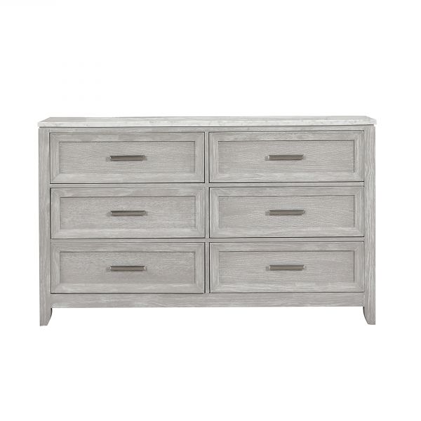 Crafted with precision, the Fiona 6 Drawer Dresser seamlessly combines the beauty of real wood with durability. The multi-step finish, achieved through wire brushing and white glazing, enhances the natural wood grain, resulting in a light, clear mist gray finish. The dresser’s design showcases sophisticated details, including picture frame moldings, tapered legs, and sleek drawer pulls. Whether your decor leans traditional or contemporary, the transitional style of the Fiona dresser effortlessly fits in.