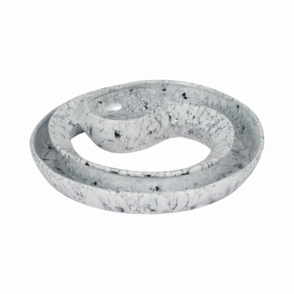 A marle bowl with a playful, circular design. The snaking design still allows for plenty of room for fruits and snacks.