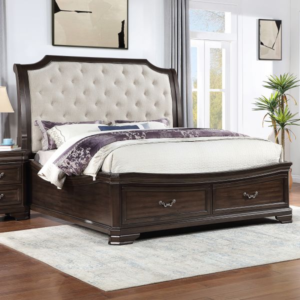 Luxurious Sleigh Styling: Lounge comfortably against the sweeping sleigh style headboard, covered in 100% polyester upholstery. Stow extra linens in the convenient, space saving storage footboard.