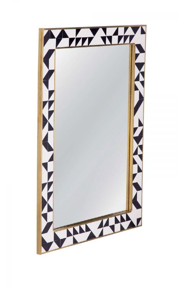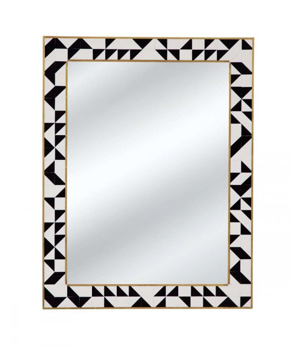 The Macari Wall Mirror features a sleek rectangular design complemented by a sophisticated frame blending black, brass, and cream bone tones. This versatile piece adds a touch of elegance to any room, effortlessly elevating your home decor with its modern yet timeless style. Crafted with attention to detail, it offers both functionality and aesthetic appeal, making it a perfect addition to your living space.