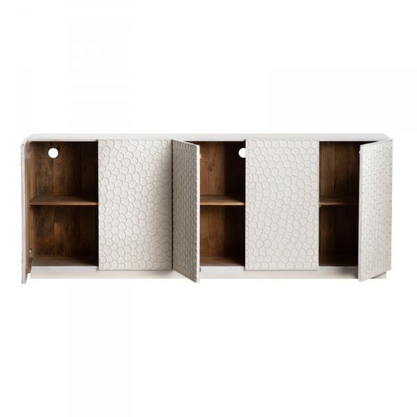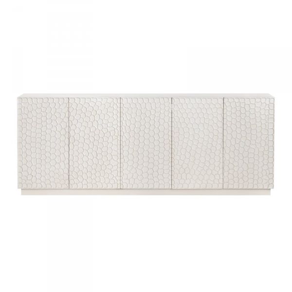 The Malibu sideboard is a statement of seaside elegance. This 5-door sideboard brings the allure of coastal living to your decor. The standout feature is the organic texture that adorns the surface. This unique texture adds depth and character to an otherwise clean and elegant piece.
