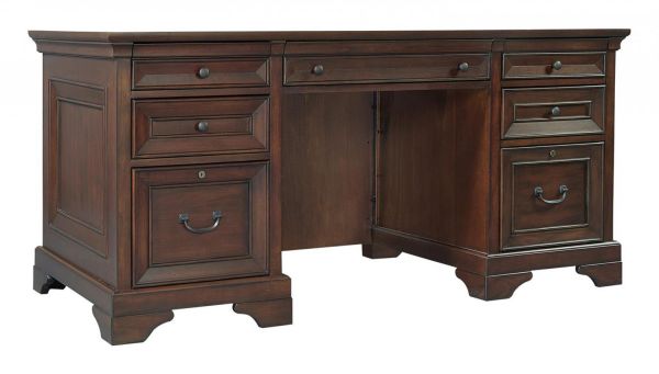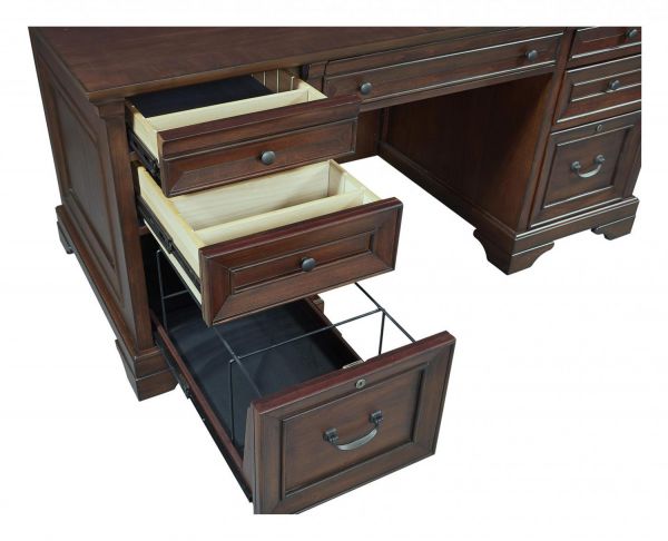 Inspired by the best traditional looks, the Richmond executive desk is a stunning yet elegant fit in any home. Accented by a stunning brown burgundy finish and beautiful antiqued bronzed hardware, this piece will make it easy to express your style, your way.