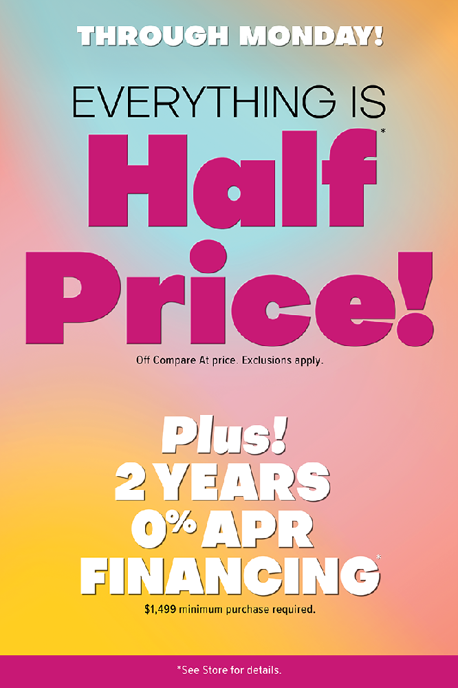 Qualified buyers enjoy 0% APR Financing for 2 Years with a minimum purchase of $1,499. Exclusions apply. See store for details.