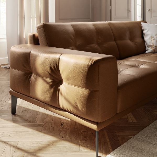 The Toledo sofa represents the perfect synthesis between minimal and vintage style. It has linear, light lines - embellished with fine crafted tufting on seat, backrest end outside arm panel - and large seats that ensure superior comfort. Indulge yourself in this beautiful marriage of minimal and vintage style.