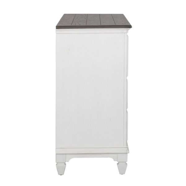 Create a classic cottage style with this 8-drawer dresser. The two-toned wire brushed white finish with charcoal top adds a taste of vintage, allowing this piece to work from the mountains to an industrial loft. The charcoal top is accented by planks while the white base is highlighted by bead molding and antique pewter hardware. Style uncompromised with storage abound, enjoy the many drawer sizes, each equipped with bottom case dust proofing.
