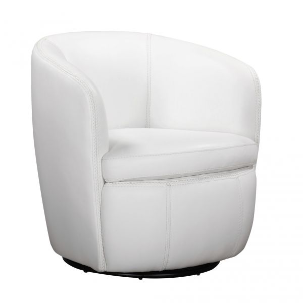 The timelessly chic Barolo leather swivel chair features a classic yet versatile silhouette that fits effortlessly into almost any room. This low-profile barrel seat is wrapped in glove soft leather, offering 360-degree swivel action to allow for quick pivots in any direction. Bold decorative stitching elevates this chair to the next level, securing its place as a tried and true staple piece in your living space.