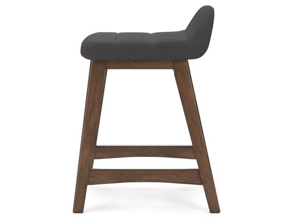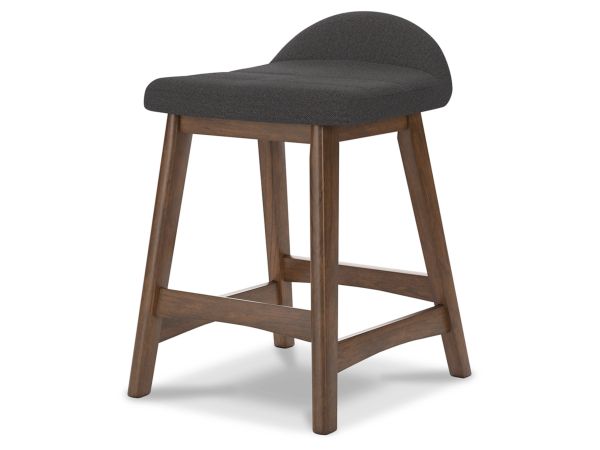 This upholstered bar stool adds an air of playful simplicity to your dining space, capturing the architectural language of mid-century stylings. The seat invites the eye with a soft-edged silhouette and charcoal-hued cushion. A casual, yet timeless, finish on the frame creates visual contrast to complete this study in form and function.