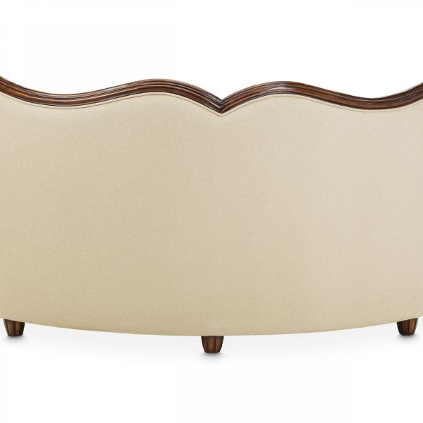 Decorative wood frame along the top and arms