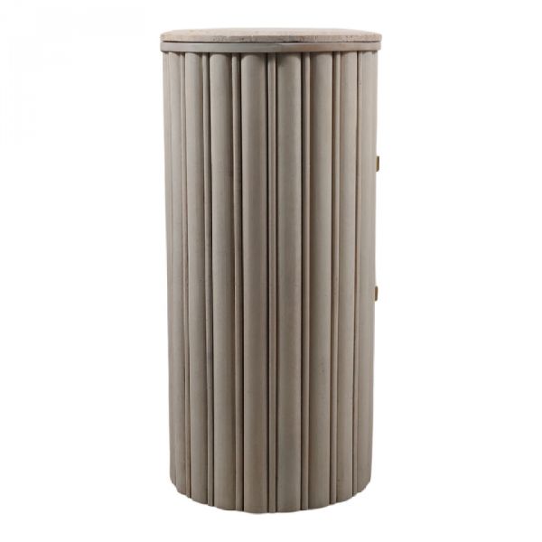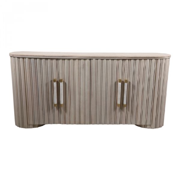 The Colmar console is fluted all around and features cream tones for a versatile color palette that is topped off with a marble top and hardware for regalness.