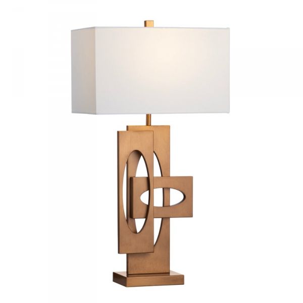 Layered shapes with a rich golden finish are juxtaposed to create the linear body of the Crestview Collection Eisher Table Lamp. Topped with a rectangular linen shade this lamp is the epitome of form meets function.