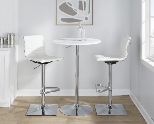 The Elia Bar Table is the definition of versatility. Hydraulics allow the table to be usable as an intimate table for two or a bar table at a party! Choose from a variety of table top material options and assemble with ease with its new tool-less assembly feature!