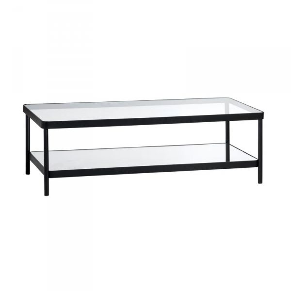 The Ellison Cocktail Table is a contemporary piece that features a glass top as well as a glass shelf right underneath.