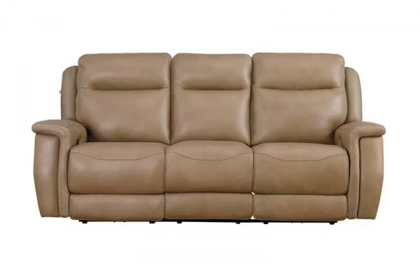 The Fisher power reclining sofa is unmatched in quality and function. Wrapped in top-of-the-line leather and contrast stitching, this sofa will demand your guests' attention as a modern centerpiece for your living room. Built into the sofa is a headrest and footrest that smoothly moves back and forth thanks to the glider mechanism. Each member of the Fischer family also includes a USB charging port as well as a "home button" that will reset the piece back to its natural state.