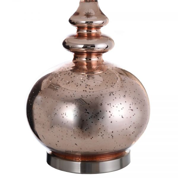 The Gemvara table lamp works wonderfully as a central component of your living room's aesthetic. This Table Lamp comes in a rose glass base and steel frame with a beige hardback fabric shade.