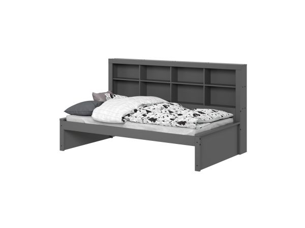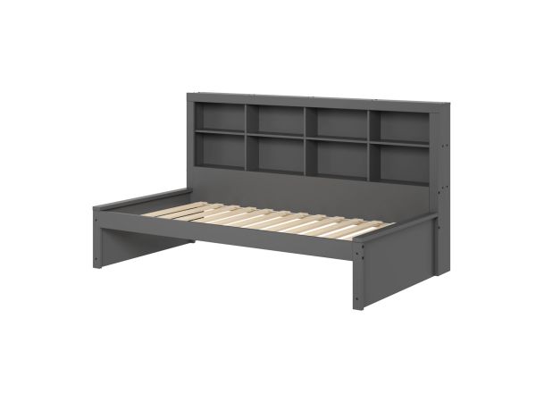 This gray day bed is charming addition to your child's room that blends functionality with style. Crafted with love by a family-owned legacy, this daybed not only offers a cozy spot for your little one to rest but also brings organization and elegance to their space. The built-in bookshelves inspire a love for reading and keep cherished stories close at hand. It's the perfect blend of comfort and convenience, designed to maximize space and encourage tidiness. Let this daybed be the setting for countless bedtime stories, cozy moments, and cherished memories.