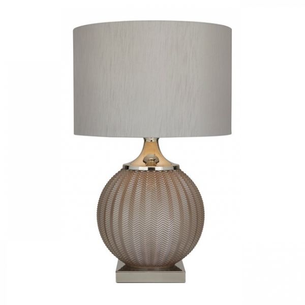 This accent lamp is crafted with a fabric shade and glass body. The base has grooved patterns of chevrons with a glossy finish for a chic touch.