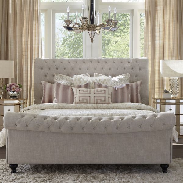 A dream come true, this luxurious upholstered bed is a statement-maker in every way. Worthy of being the focal point of the bedroom, it creates a high-end look with classic design elements that will always be in style. Tailored in an exquisite fabric cover, it features a matching footboard and side rails distinguished by superior construction features and upscale design details. Its plush layers of padding and touchably soft fabric ensure you are comfortably supported as you lounge in bed or enjoy a favorite book or movie.