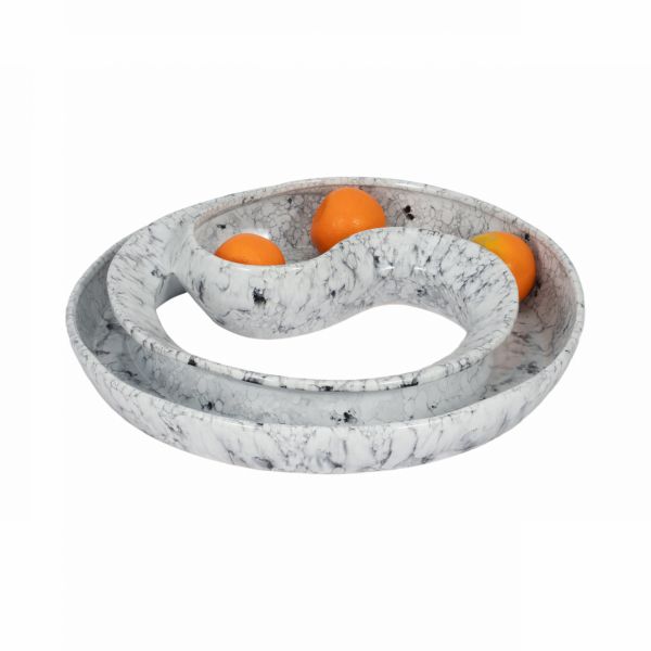 A marle bowl with a playful, circular design. The snaking design still allows for plenty of room for fruits and snacks.