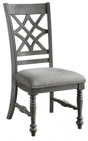 Enhance to your dining experience with the Lakeway Side Chair. Splendid back design in an outstanding gray pecan finish with a delectable gray seat fabric, and exquisite turned legs give this chair both style and comfort.