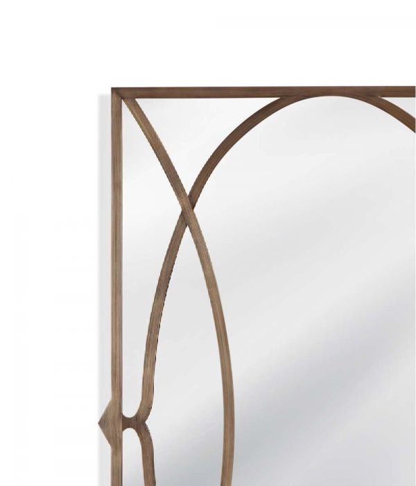 The Lattice Wall Mirror boasts a rectangular shape with an interlocking circle pattern, framed in bronze-finished metal, seamlessly blending modern and traditional aesthetics.Crafted with attention to detail, this mirror effortlessly merges modern and traditional styles, adding a timeless elegance to any room.