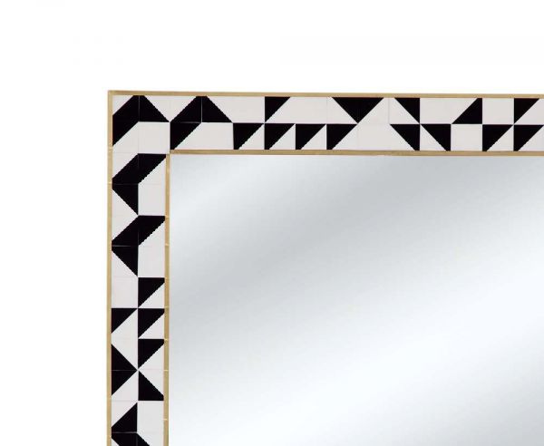 The Macari Wall Mirror features a sleek rectangular design complemented by a sophisticated frame blending black, brass, and cream bone tones. This versatile piece adds a touch of elegance to any room, effortlessly elevating your home decor with its modern yet timeless style. Crafted with attention to detail, it offers both functionality and aesthetic appeal, making it a perfect addition to your living space.