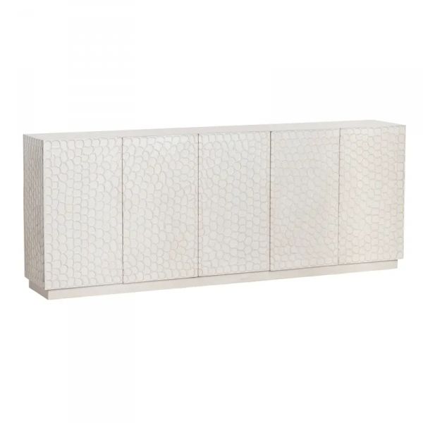 The Malibu sideboard is a statement of seaside elegance. This 5-door sideboard brings the allure of coastal living to your decor. The standout feature is the organic texture that adorns the surface. This unique texture adds depth and character to an otherwise clean and elegant piece.