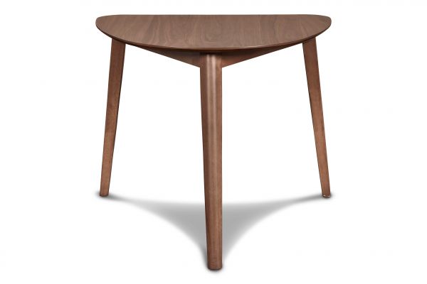 The Oscar dining table offers a stylish, space-saving solution for compact homes. Crafted from solid rubberwood and walnut veneers, it features a clear finish that highlights the wood grain. Clean lines and organic curves reflect timeless mid-century style. Perfect for kitchen nooks, small dining areas, or entryways, it seats two comfortably.