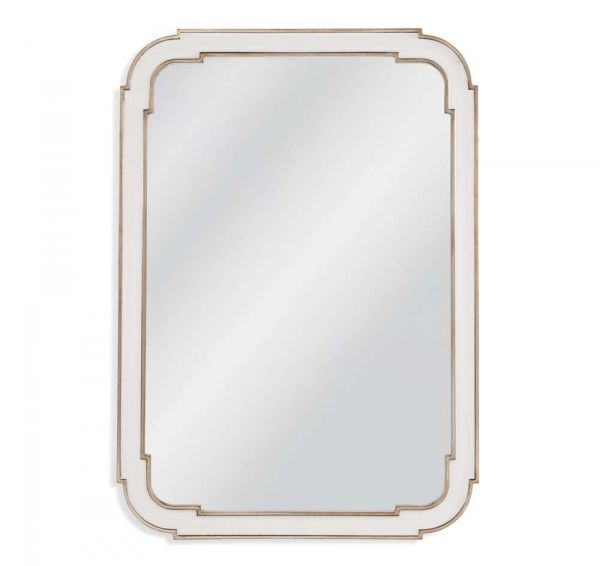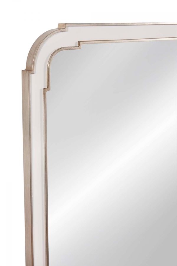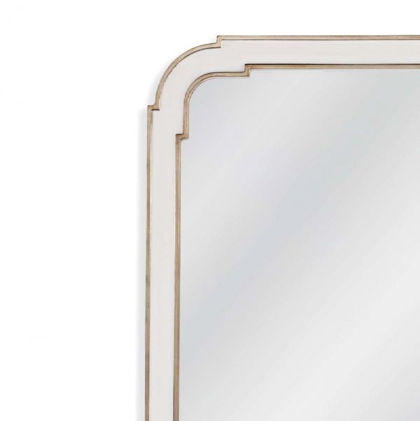 The Sasha Wall Mirror showcases white lacquer and raised silver leaf detailing, adding a touch of traditional glam/luxe elegance to any space.Crafted with attention to detail, this rectangular mirror seamlessly blends traditional and glam styles, making it a stunning focal point in any room.