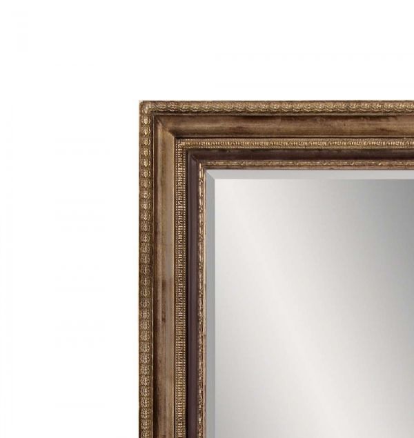 The Sergio Floor Mirror showcases a stunning beveled frame and an exquisite antique gold finish. With its traditional rectangular design, this mirror adds a touch of timeless elegance to any space. Perfect for enhancing your home decor with its classic charm and sophisticated allure.
