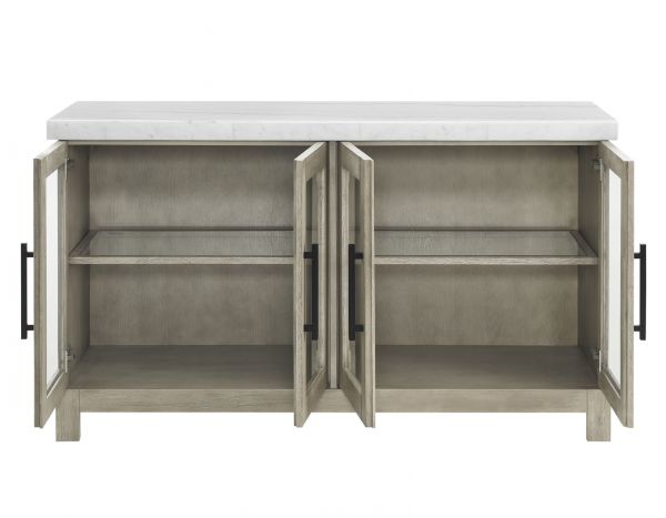 The Carena marble top sideboard is a versatile and feature-packed piece for any dining or living room. The wheat wood finished base is accented with a marble top for a flair of elegance. A single touch on the side allows you to cycle through four built-in lighting modes to perfectly display your showcase collectibles.