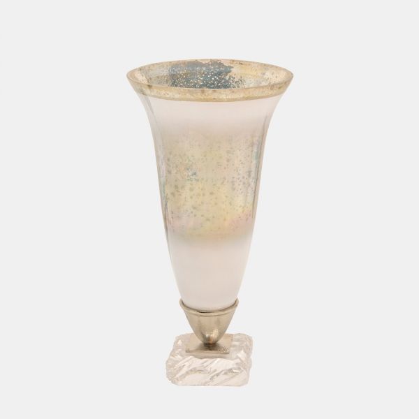 SILVER GLASS VASE WITH ACRYLIC BASE