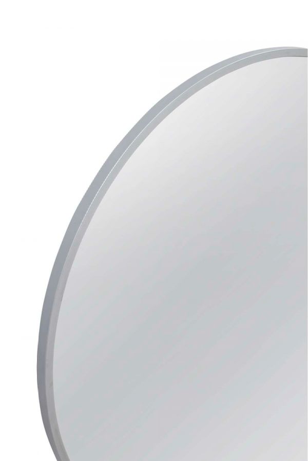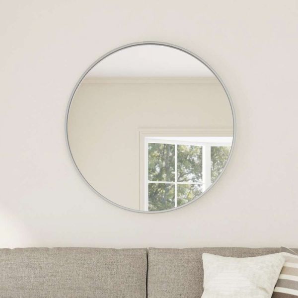 The Portia wall mirror is the epitome of beauty in simplicity, featuring a round mirror with a silver metal frame. This versatile piece fits in many aesthetics and has a functional, large viewing radius.