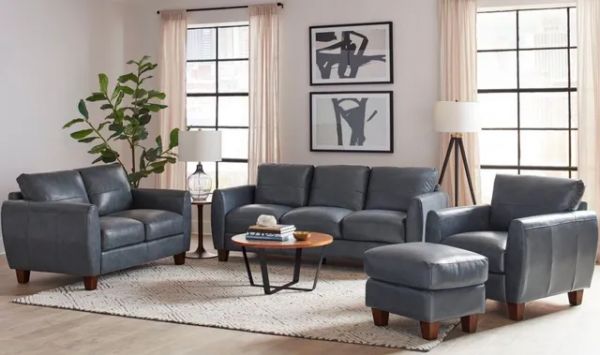 Bring high style and luxurious leather into your home with the Traverse Sofa. Offering a sleek, contemporary look in brilliant blue 100% top-grain leather, this sofa creates a modern look for your decor.