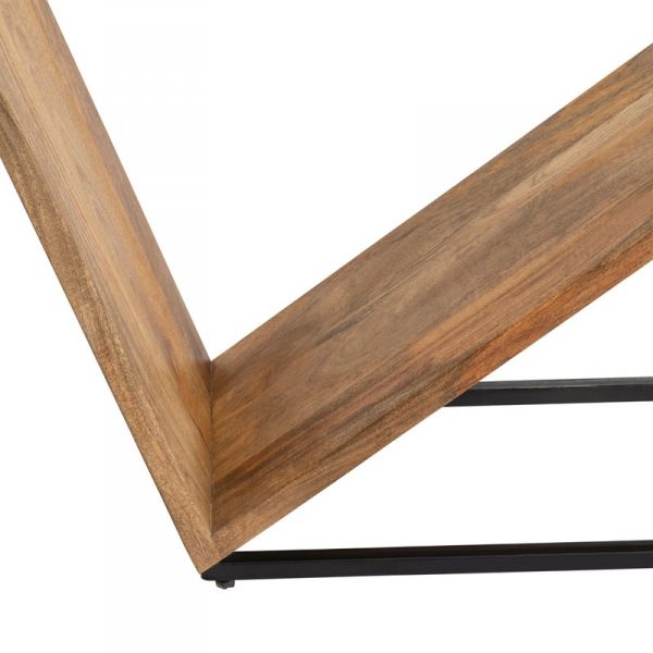 The Trinidad Console Table has a unique design that will make the perfect accent piece in your home. A wooden triangle sits against a metal triangle to create an angled console table that will look stunning against the back of your sofa or along a wall. The light-brown wood and black metal contrast each other to give a modern look to this piece.